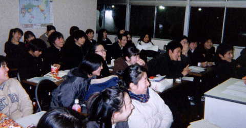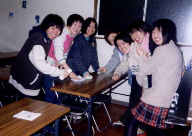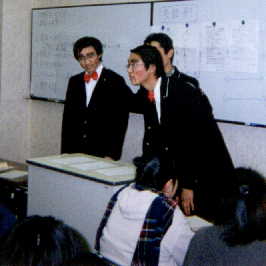(右の写真は、塾生の有志による激励のパフォーマンス。