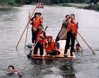毎年7月下旬に小川地区青少年育成市民会議主催により開かれる「夏井川いかだ下り大会」に、学樹舎は参加しています。