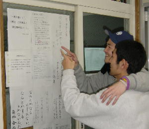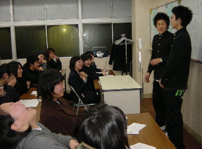 毎年センター試験の直前に「受験生壮行会」が開かれます。 試験前、試験中、試験後の注意点・過ごし方等についてはもちろん、 受験時に最も大切な心の持ち方やコントロールのしかたなどについてアドバイスをします。 また、受験前の緊張をほぐすための有志によるパフォーマンスなどもあります。 緊張と笑いに包まれながら、力強くいざ出陣!!